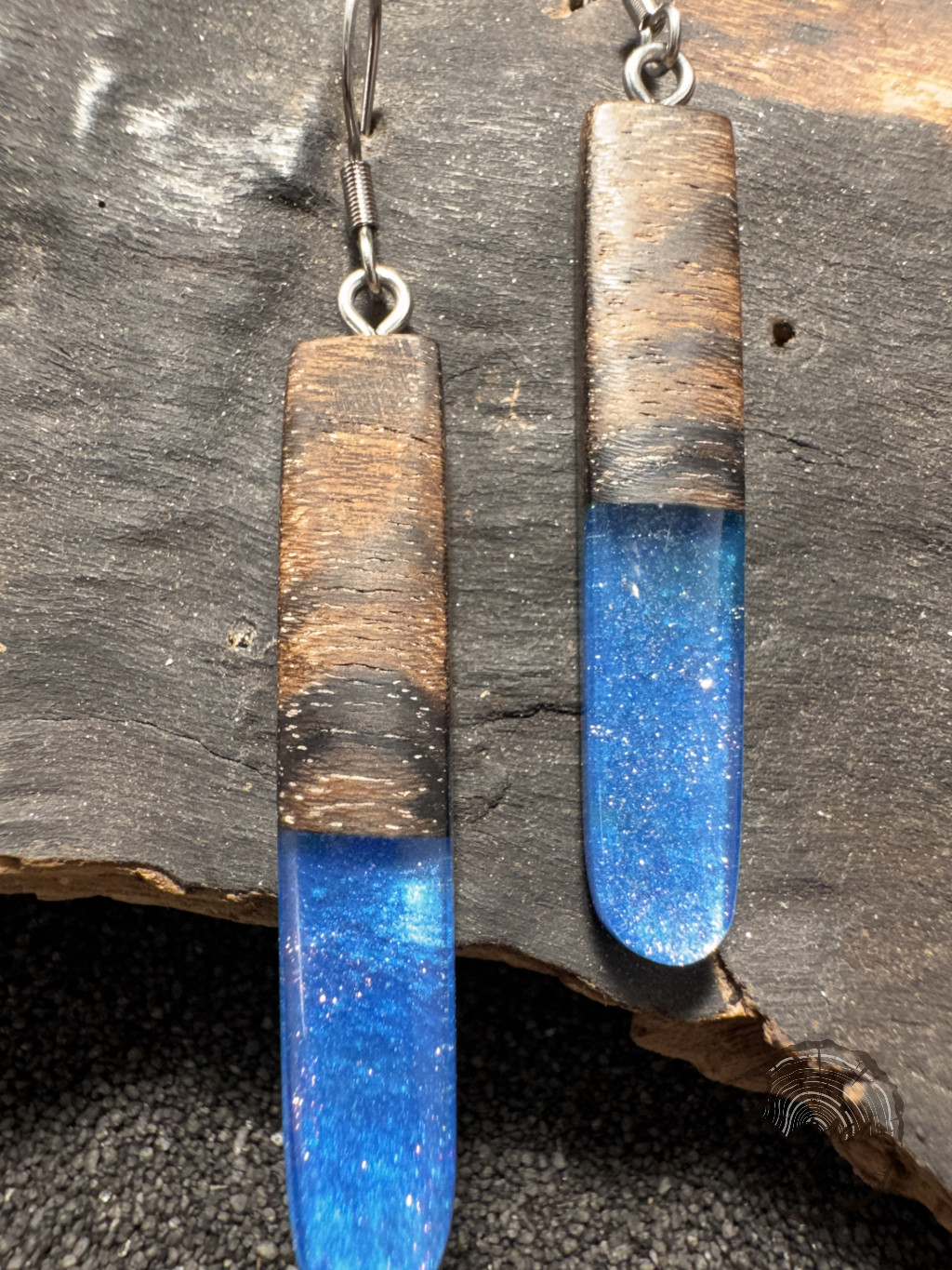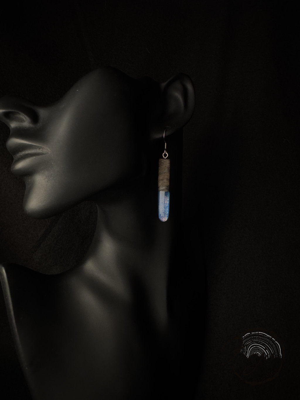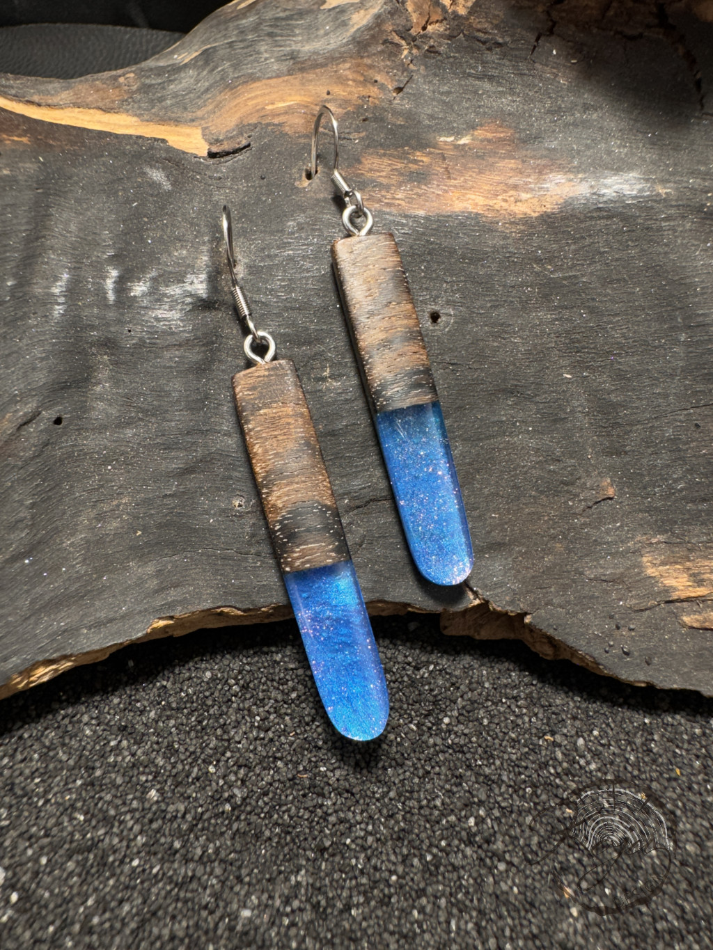 Csillogó pigmenteknek köszönhetően ez a fülbevaló gyönyörűen szikrázik. A kék háttér kiemeli a csillogó hatást.