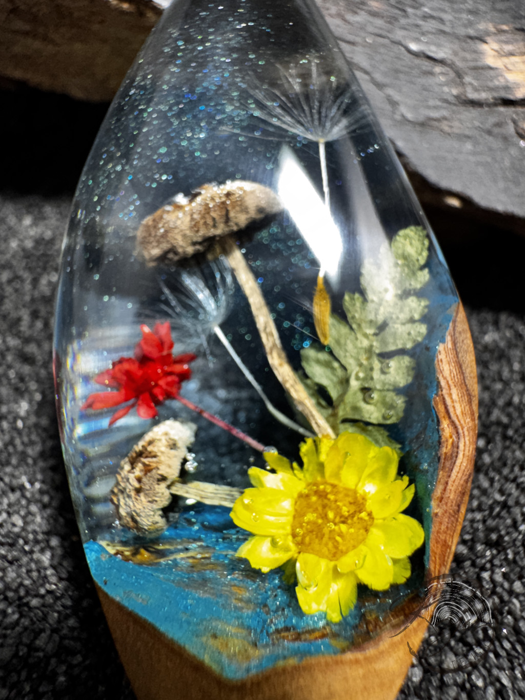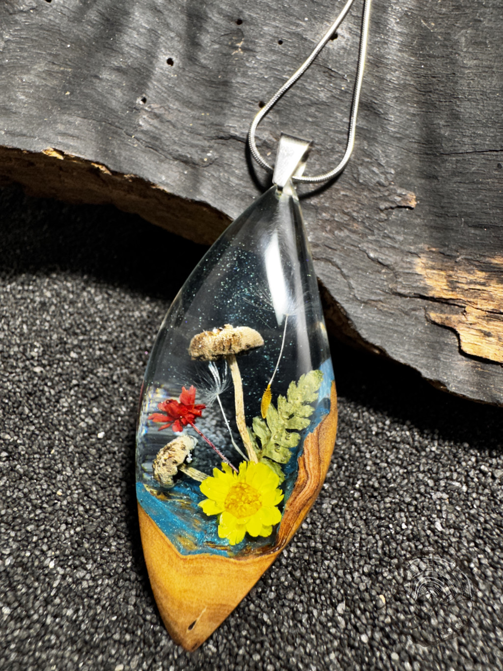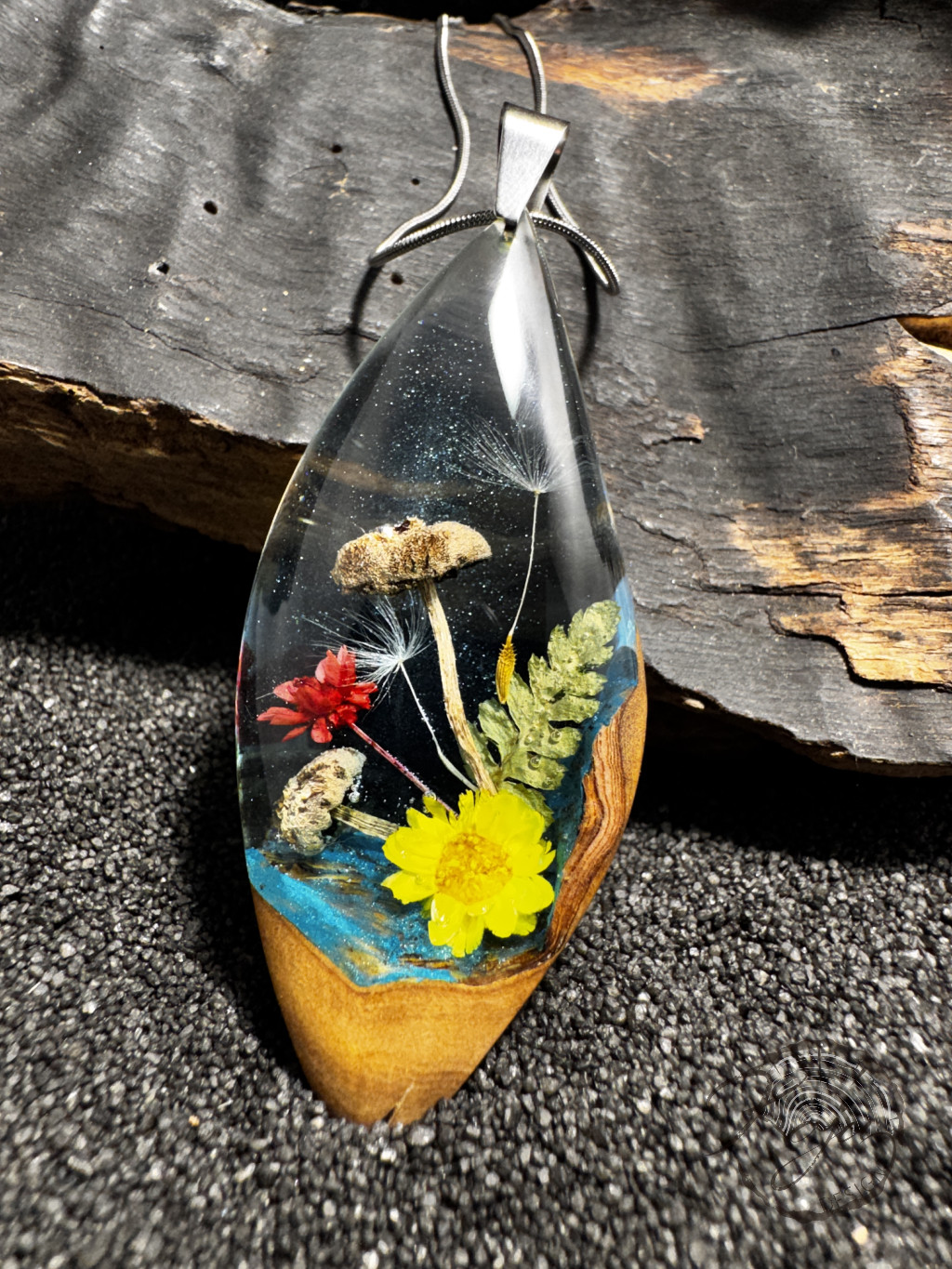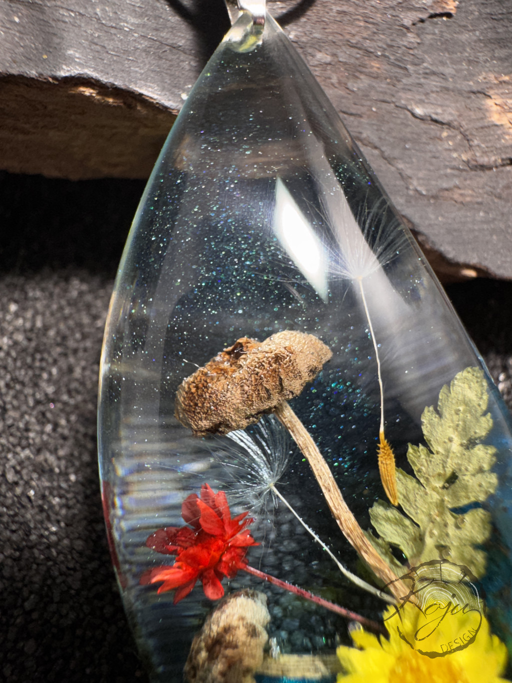 Az áttetsző gyantában minden kis apró részlet tökéletesen megfigyelhető.Az ékszer teljesen egyedi, kézzel készült darab. Minden ékszeremet kézzel formázom, előre gyártott sablont nem használok.