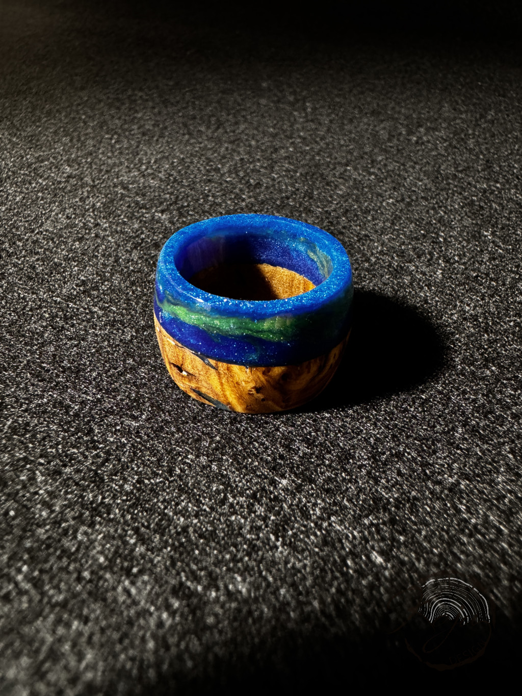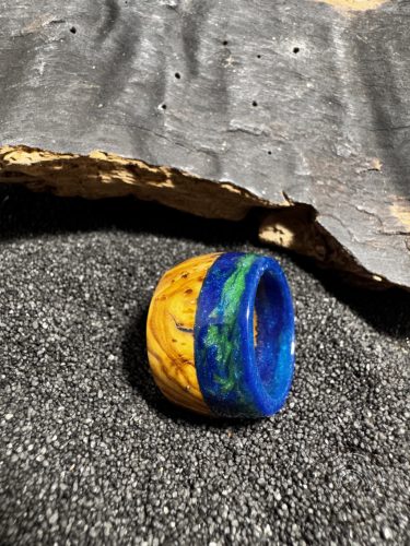Különleges epoxy gyanta és olivafa gyűrű. Gyönyörű királykék epoxy gyanta melyben zöld szinezet is látható.A gyűrű kiváló minőségű anyagok felhasználásával készült, így tartós és hosszú éveken át megőrzi szépségét. Kézműves technikával készült, így minden egyes darab egyedi és megismételhetetlen. Ha szereted az egyedi ékszereket és szeretnéd egy különleges darabbal feldobni a szettjeidet, akkor ez a citromsárga karika gyűrű tökéletes választás számodra.Legyen szó saját magad megörvendeztetéséről vagy egy szerettednek szánt ajándékról, ez a gyűrű garantáltan sikert arat majd. Stílusos megjelenést kölcsönöz viselőjének, és kiemeli az egyéniségét. Válassz te is egyedi kézműves ékszereket, és szerezd be ezt a lenyűgöző kék és fekete karika gyűrűt most!