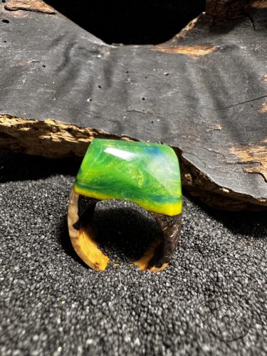 A zöld és sárga epoxy gyűrű egy igazi egyedi darab a kézműves termékek szerelmeseinek. A gyűrű alapjául szolgáló tunéziai olivafa elegáns megjelenést kölcsönöz a terméknek, míg az epoxy a modern stílust képviseli.Ez a gyűrű nemcsak szép, de kényelmes viselet is, ami tökéletes kiegészítője lehet mindennapi öltözékünknek. A gyűrű egyedi jellege miatt garantáltan nem találkozol vele másnál, így kifejezheted vele saját egyéniségedet és stílusodat.A gyűrű tökéletes ajándék lehet szeretteidnek, barátaidnak vagy akár saját magadnak is. Válaszd a minőséget és a különlegességet ezzel a gyönyörű kék epoxy gyűrűvel, mely mindenkit elbűvöl majd a magával ragadó szépségével és egyediségével. Legyen a tied ez a varázslatos darab, mely minden alkalomra megfelelő és örömet okoz viselőjének.