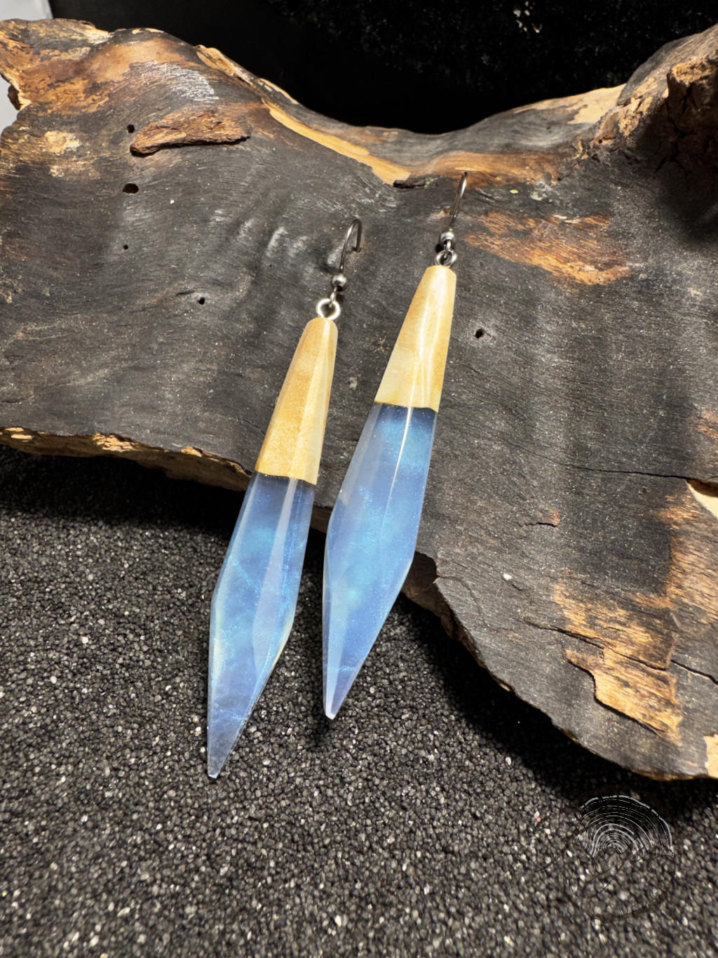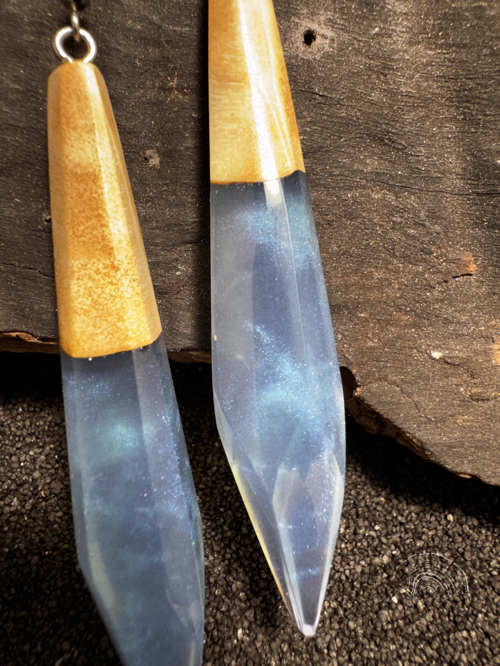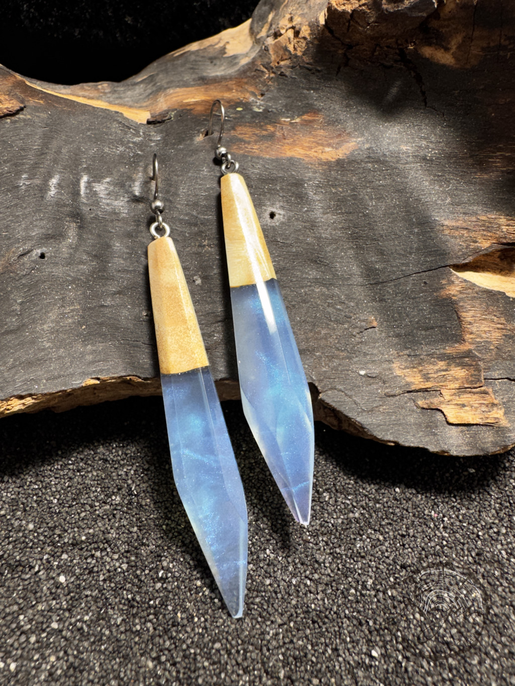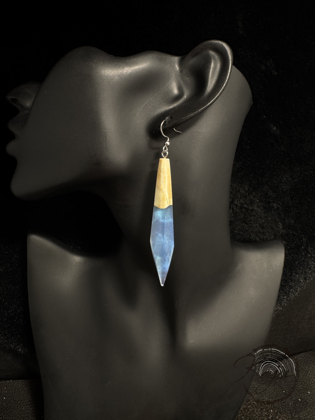 Nyárfa és kék színű epoxy gyanta fülbevaló.
